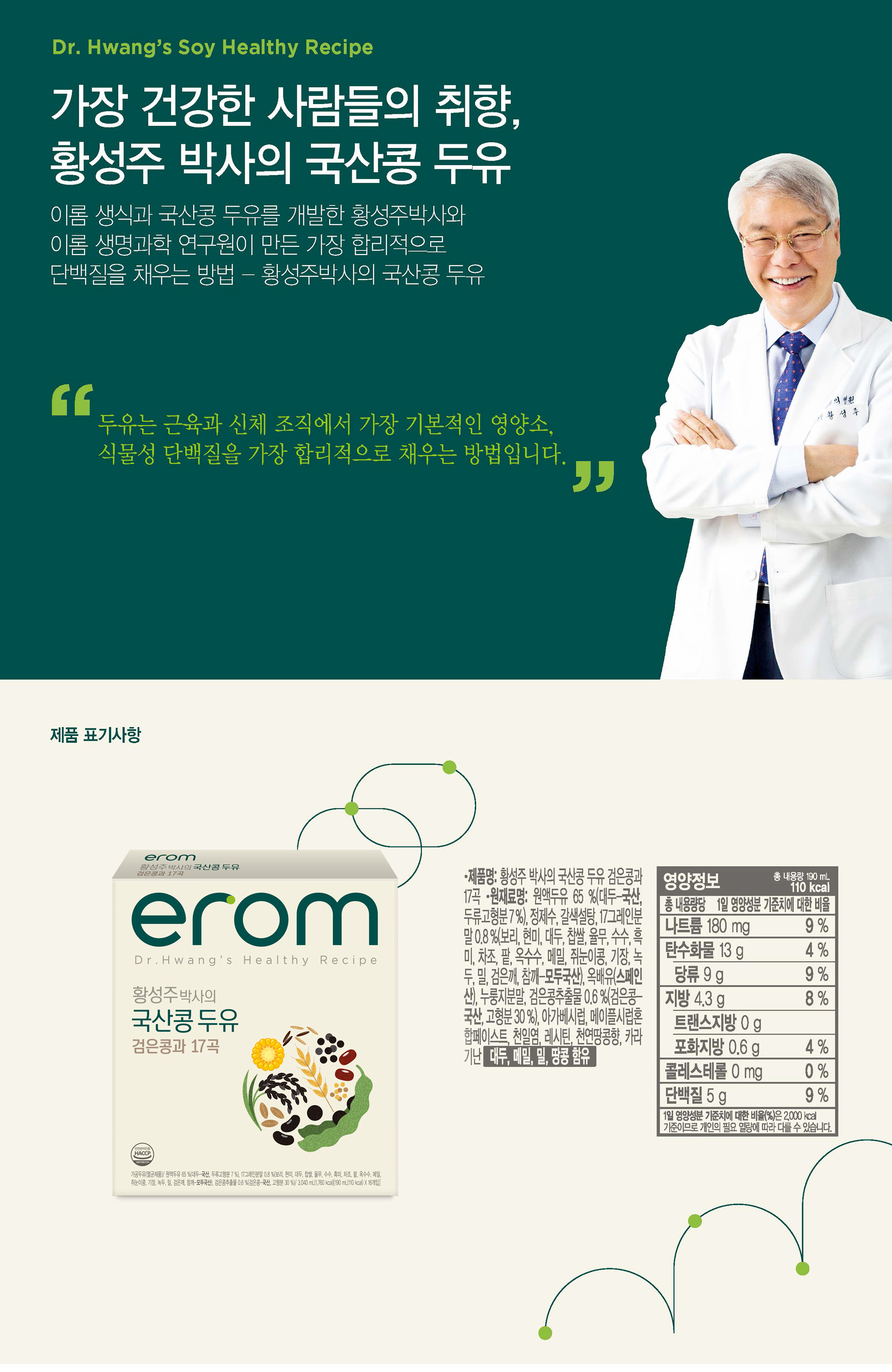 이롬 황성주 박사의 국산콩두유 검은콩과17곡 190ml*16팩