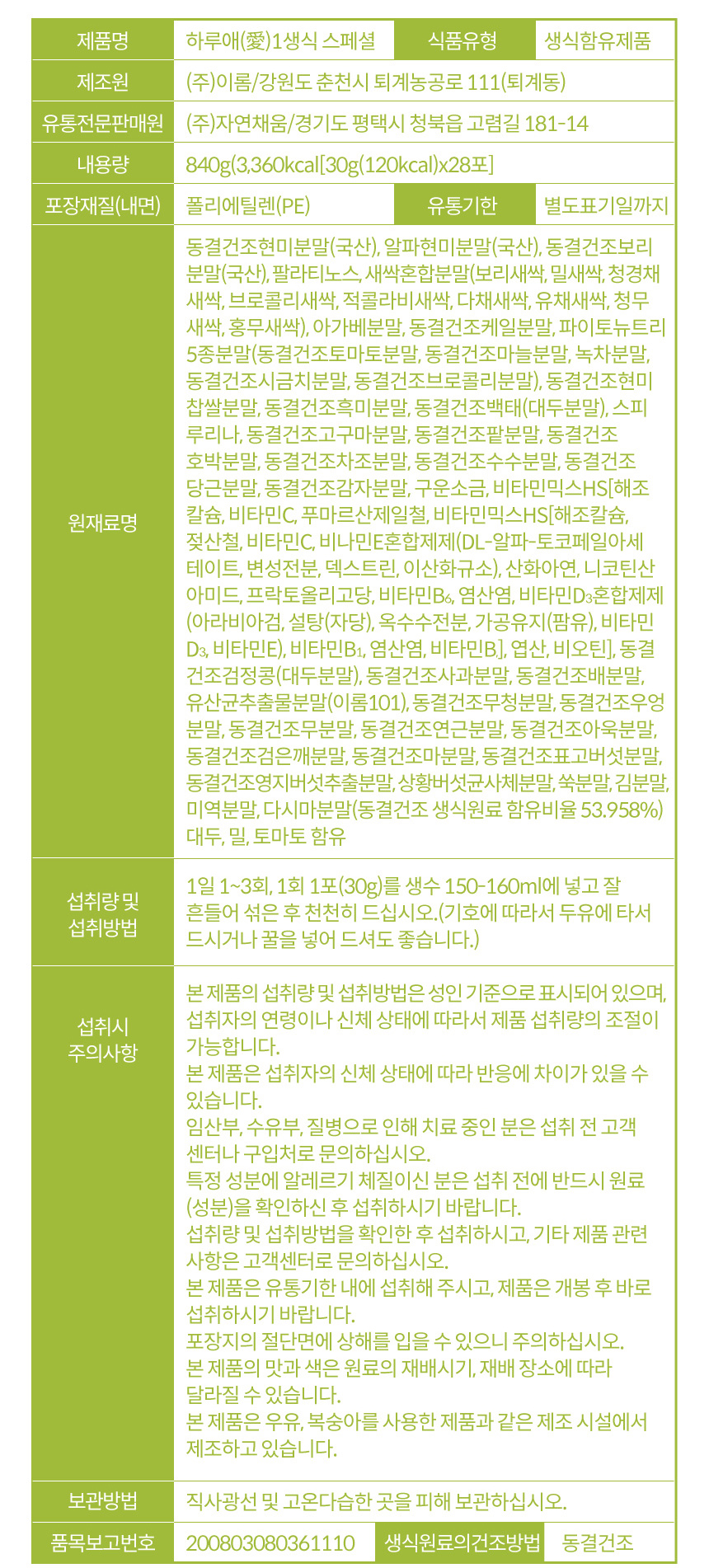 자연채움 하루애 1생식 스페셜 28포(4주분)