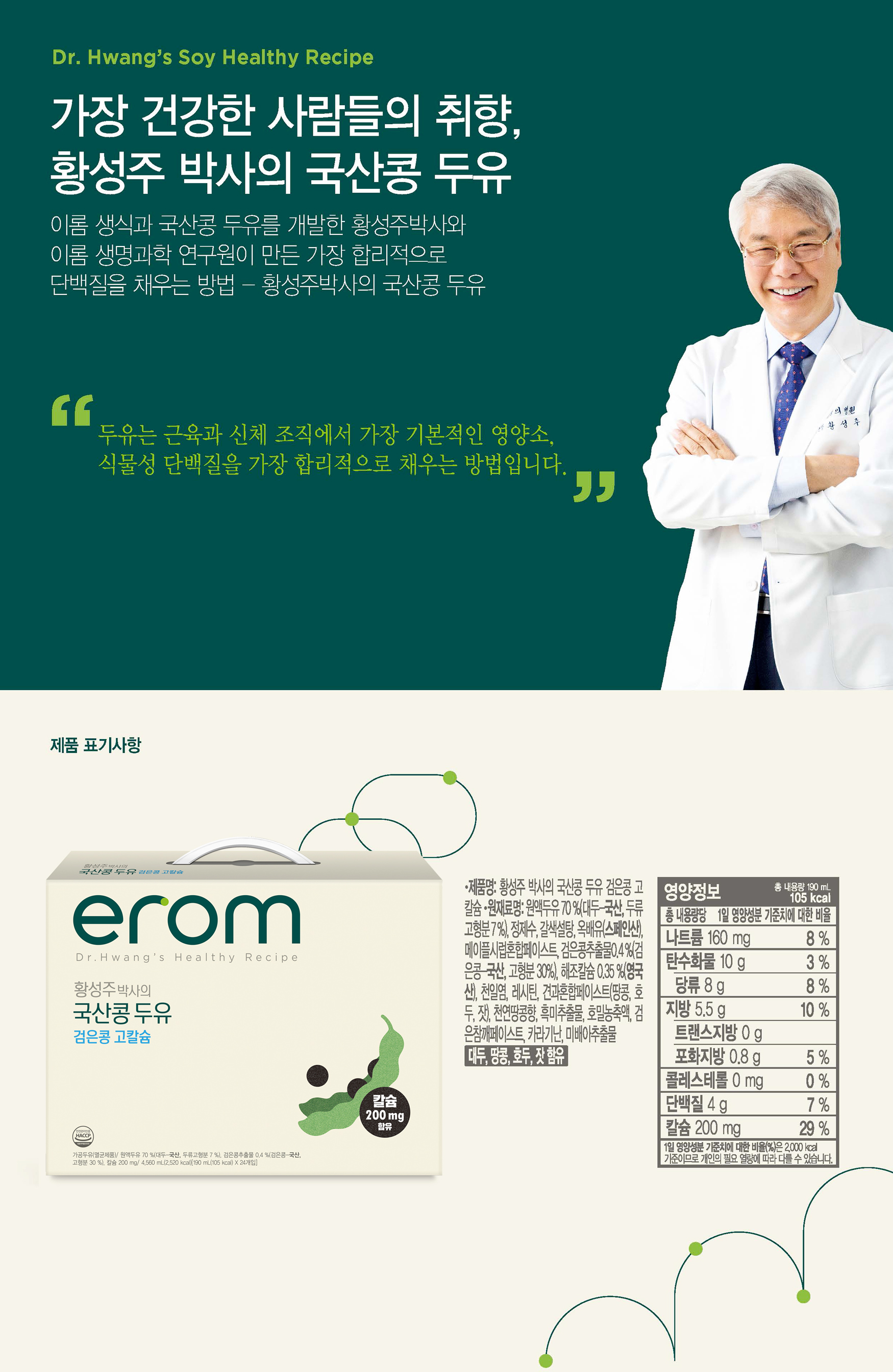 [2box] 이롬 황성주 박사의 국산콩두유 검은콩 고칼슘 190ml 24팩 x 2box